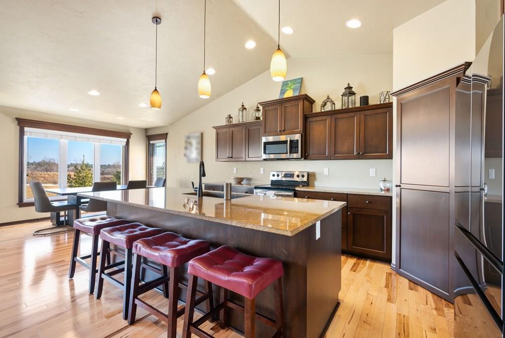 You will love this beautiful home! Meticulously maintained & well kept. Open concept, vaulted ceilings, high quality finishes including Delta fixtures, Hickory hardwood floors, Anderson windows, Maple doors & trim, LG washer & dryer, Stainless Steel Samsung appliances & granite countertops in the kitchen and bathroom vanities. Primary bedroom w/ensuite features dual sinks, walk-in shower and a generous walk-in closet. Ready for your personal finishes, the walkout lower level features 8' ceilings, tons of storage space, 4 larger windows that offer plenty of sunlight, concrete patio for grilling & entertaining, and is plumbed for a third bathroom. Walk out your back yard for convenient access to the neighboring park (YMCA).