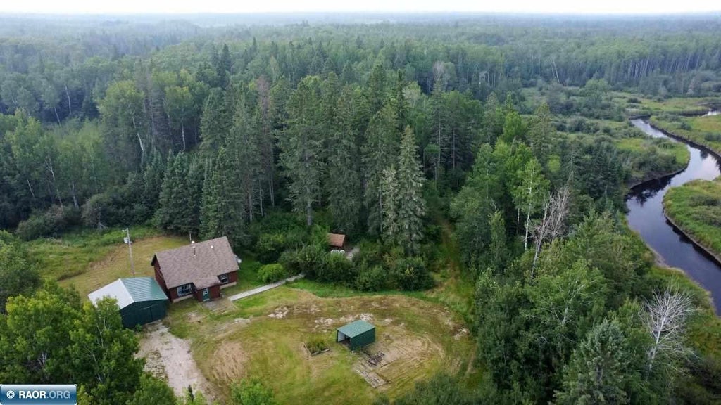 Private 3 BR, 1 BTH home nestled in the woods with 250' of frontage on the Little Fork River. Main level of home features living rm w/laminate flooring and free standing wood stove and spacious kitchen with with main floor laundry. Master bedroom on the main floor includes large walk in closet/possible office. Upper level includes 2 bedrooms (1 with large storage area). Additional features include a detached 2 stall garage, log sauna bldg by a creek, new septic system, large yard with several other out buildings and trails throughout 20 wooded acres. Located within 10 minutes of Cook or Lake Vermilion!
