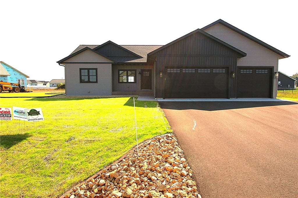 New construction home by N&P Properties Home has 5 bedrooms and 3 bathrooms with a 3 car garage. Fantastic location in the village of Lake Hallie. Great floorplan that features open concept living with 9ft walls with trayed ceiling in living room and owners suite. Redwing Custom Cabinetry & flooring throughout. Large Kitchen with pull out pantry and island. Convenient mudroom with built in cubbies and main floor laundry. Owner suite with his and her walk in closets and large bathroom. 1st floor laundry with cabinets and hanging rack. Lower level features two large bedrooms with walk in closets, family room and full bath. Landscaping includes seeded yard, bullet edging, rock and sprinkler system. Garage insulated and sheet rocked.