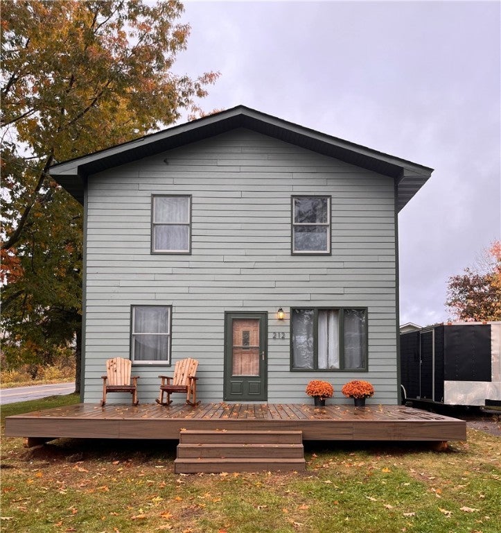 (364/PB) Pride of Ownership shows in this charming home on East 4th St in Glidden. This fine offering features over 1,500+/- sq. ft. of renovated living space. The main level has a bright and inviting living room, dining area, spacious kitchen with plenty of oak cabinets with soft-close drawers, slate backsplash over countertops, renovated bath with large step in shower, bonus/storage room with laundry facilities and an enclosed rear entry room. The upper level has 3 bedrooms, one has a huge walk-in closet. Many rooms have quality LVT flooring and ceiling fans. Basement. Composite deck. Newer shingles, maintenance-free exterior. 1-car garage. Generous corner lot with rear alleyway. Move-in ready. Close to all the amenities the Northwoods has to offer. Invest today. Asking $154,900.