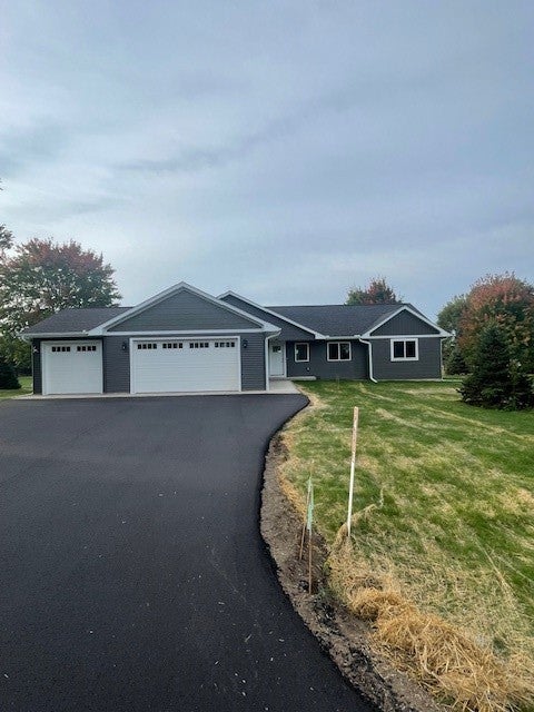 Welcome to this beautifully crafted 3-bedroom, 2-bathroom home that combines style, function, and quality finishes throughout. The large open foyer makes a stunning first impression, leading into a thoughtfully designed living space. The kitchen features custom-made cabinets with soft-close doors, quartz countertops, a spacious center island, and a classic white subway tile backsplash. A patio door opens to a 13x14 concrete patio, ideal for entertaining or enjoying peaceful views of mature trees. Both bathrooms offer easy-care one-piece cultured marble tops, while the home’s interior highlights include stained 3-panel poplar doors and trim, laminate flooring throughout, and LVT in the bath and laundry areas. Practical conveniences include a private well and septic system, plus an asphalt driveway. With its modern finishes and inviting layout, this home is move-in ready and built to be enjoyed for years to come.