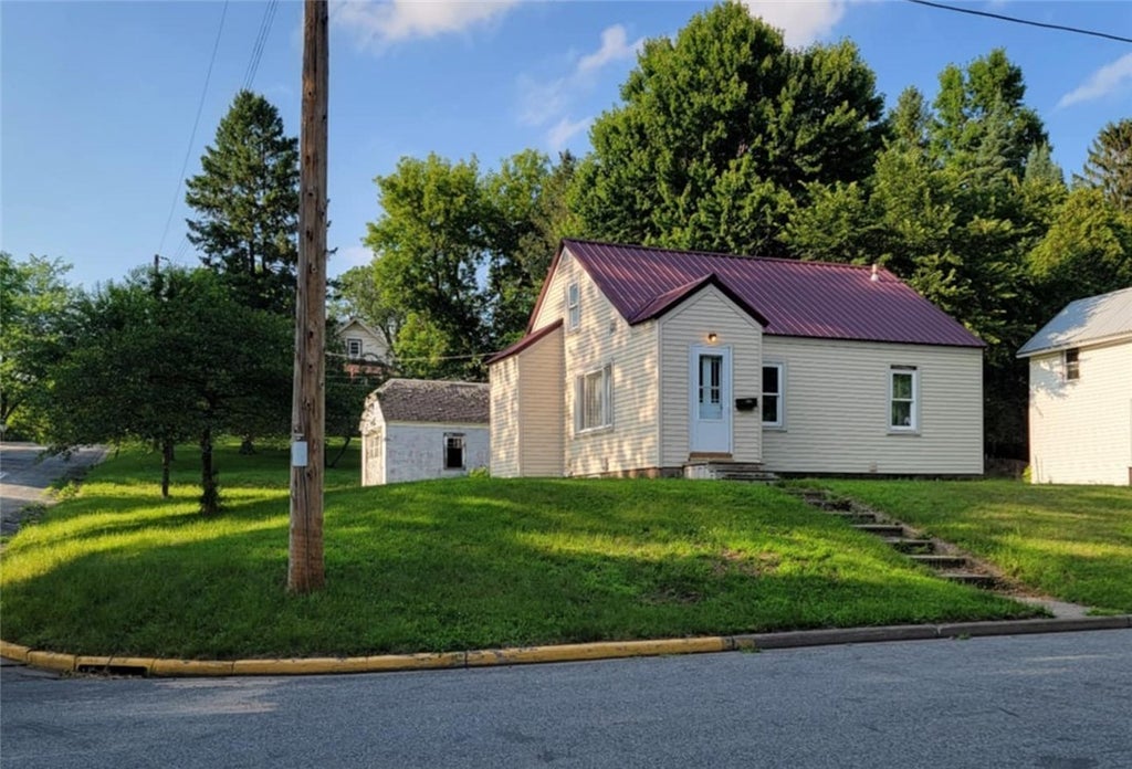 Build Equity! This home has a lot to offer and has potential - just needs some finishing work! Perched on a corner lot this home offers steel roof, vinyl siding, forced air furnace and central air. Wood floors in Living Room, nice layout with upper level being a nice landing area perfect for office space and large bedroom. Full basement, exterior entry can go to basement or kitchen area. Home does need finish work, the Kitchen and Main level bath has been gutted and ready for you to remodel to your liking! Single garage needs some repair. If you are handy this may be the project for you!