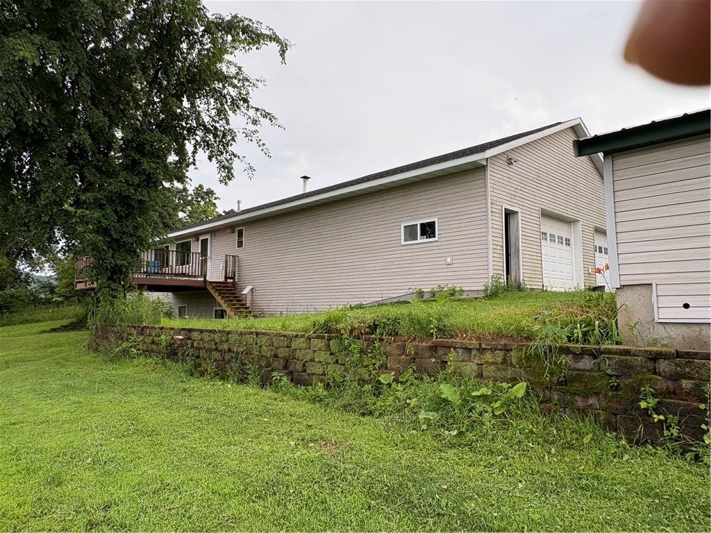 Country home all set for Hobby Farm enthusiasts! Fenced Pastures, chicken coops, hoop barns, garden and more !!! Gorgeous views from atop the hill where the home sits this 2 Bed 2 1/2 bath home, with two non-conforming bedrooms in basement, offers more than you would think. Large open concept kitchen with vaulted ceilings with walk out to a deck on both sides of home. Large 2 car attached garage with access to basement. Great kitchen with plenty of storage and pantry! Lower level has walk out and is ready for finishing touches. There is an area in basement ready for kitchenette. 5 acres that will be surveyed prior to closing. Large hoop barn and other outbuildings for storage!! In Melrose School District.