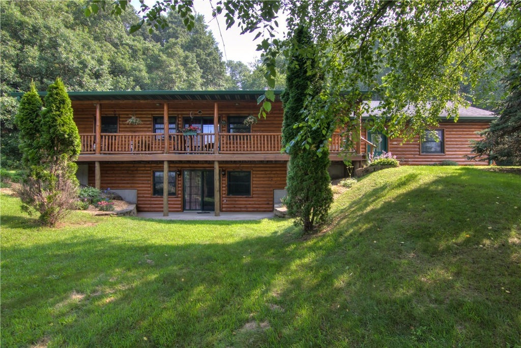 Endless opportunities await—create your dream hobby farm, enjoy prime hunting, start a garden, or simply relax on your own private 15-acre retreat! This private one-owner home has been beautifully maintained and thoughtfully designed. Landscaped yard with multiple spaces to unwind and abundant wildlife including deer, turkey, bear, sandhill cranes, and more. Watch sunsets from the covered front porch or explore the adjoining 40-acre public land parcel. Spacious primary suite with ensuite, generous closets, additional main-level bedroom, and laundry. Open-concept living with gas fireplace flows into a beautiful four-season room. Lower level offers walkout family room, office, and full bath. 28x32 insulated pole shed with concrete floors and wood stove. Screened attached garage for gatherings. Concrete stamped patio/sidewalk added 2023. New furnace and AC prior to closing. Peaceful, private, and ready for your vision—call today for your private showing!