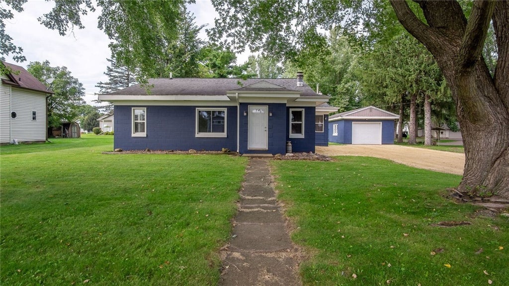 Cute, cozy, & move in ready. This 3 bedroom, 1 bathroom ranch style home w/ a 1 car (extra long) detached garage is conveniently located just a block from the Mondovi Public School & sporting event locations in a quiet and friendly neighborhood. A few small changes could be made to add quick equity & make this home even more charming & welcoming. Spacious kitchen and dining room, large living room-current flooring temporary & easily removeable to add any type of flooring new home owner may desire. Plenty of storage and built-ins for added convenience. The exterior is strong and sturdy made of cement block. Nice sized back yard with a wood deck for relaxing and unwinding as well as mature trees in the front for added shade. At this price, this adorable home will not last long. Updates include-new road facing living room window 2025, all other windows newer as well, fresh paint, remodeled bathroom, updated kitchen, a new back door, and fresh gravel added to the driveway.