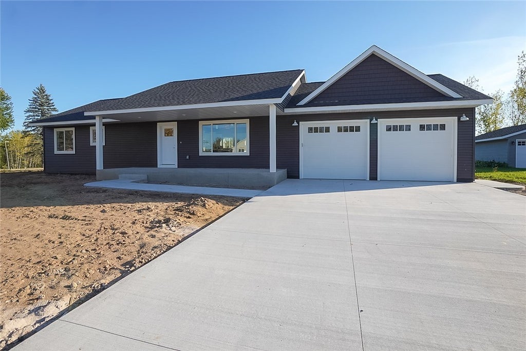 This brand new 5-bedroom, 3-bath home in Cadott offers modern style and thoughtful design throughout. The open floor plan features a spacious kitchen with custom Redwing cabinets, 8 floor island with additional seating all flowing seamlessly into the main living and dining areas. The primary suite is a true retreat with a custom tile shower, double sinks, and a walk-in closet. Two bedrooms are located upstairs, with three additional bedrooms in the finished basement, which also includes a large family room perfect for gatherings. A mudroom off the garage entry adds convenience with bench seating and a laundry area. The oversized garage provides plenty of storage, while the large concrete patio offers an ideal space for outdoor entertaining. Situated on a .40-acre corner lot, this home blends comfort, function, and custom touches in a beautiful setting.