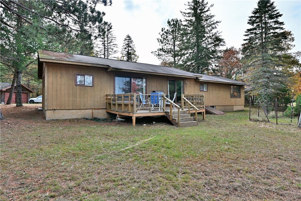 Beautiful low-elevation, sandy beach setting with 15+ acres.  Enjoy easy access to the water—no steep stairs here—just a gentle slope to your own lakeshore with two 2-car garages for all your storage needs.  The cabin is a trailer with an addition and a nice block foundation.  Updates include a newer forced-air furnace, water heater, and 200-amp electrical service.