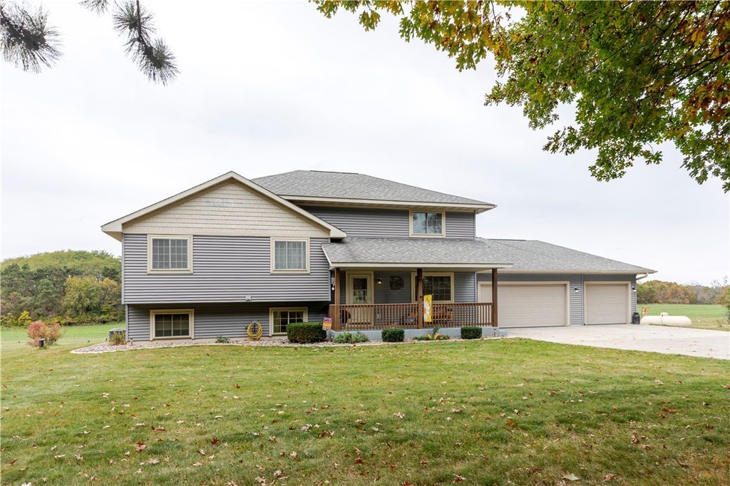 Beautiful Location, Beautiful Home, Beautiful Acreage! Located 5 minutes from the West side of Eau Claire, 15 minutes from nearly anywhere in Eau Claire, 20 minutes from Chippewa Falls, and 20 minutes from Menomonie. Enjoy the amazing views this home has to offer, from the gorgeous sunsets to the viewing of the Northern Lights from your deck or Hot Tub! Do you like privacy? Home is intentionally set back off the road 1/4 mile with two rows of trees. Enjoy the abundant wildlife from inside your home or as you are traveling around your 50 acres! Attached garage is insulated and has in floor heat with plenty of space for vehicles and toys. Additional pole shed provides added storage space. Visit today and see the fall colors decorating the yard.