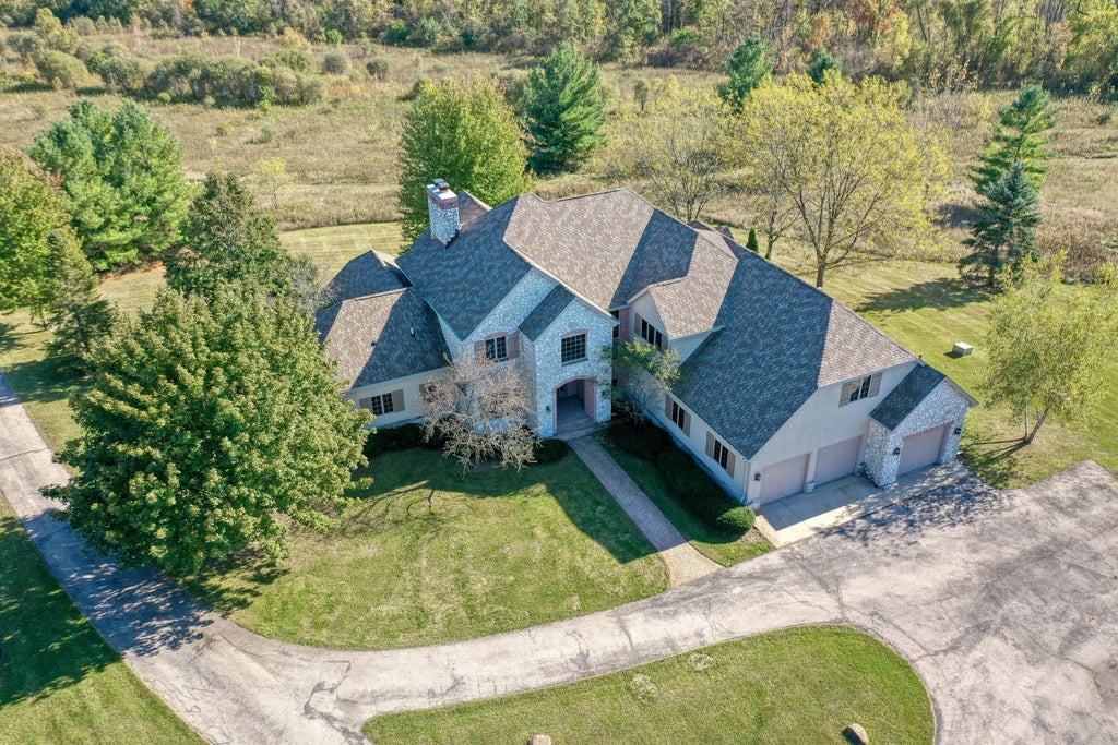 Nestled on an impressive almost 80-acre estate bordering state land, this stunning chateau-style home is surrounded by majestic white spruce. The luxurious primary suite boasts vaulted ceilings, a spacious walk-in shower, soaking tub, and dual vanities. The great room features 24-foot ceilings, exquisite wood rafters, and floor-to-ceiling windows. The chef's kitchen includes a large island with seating and a walk-in pantry. The sunroom, with in-floor heating and deck access, offers breathtaking views. Upstairs are 3 generously sized bedrooms, each with ensuite or Jack-and-Jill bathrooms. The walkout lower level includes a family room with a stone fireplace and barnwood mantle. Enjoy seclusion and convenience, just 2.5 miles from the hospital and easy freeway access. Welcome home!