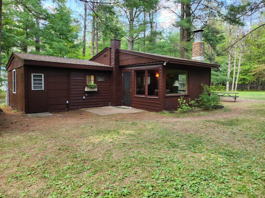Welcome to the north woods! Surrounded by tall pines, this 3-SEASONS COTTAGE has 2 bedrooms, 1 bath, open concept from dining area to family room.. Family room has bricked corner walls complete with a raised hearth with electric heater stove. 2 chimneys are there making it easy to convert to wood heat or a LP heating unit. New t.g pine on one wall completes the ''cabin look'. Back of the property has wooded area with a walking trail. Near County Land & Morgan Park on Timms Lake, Short Cut Rd. is an ATV trail access Rd. Start telling your stories today! (Cottage is serviced by a septic system, also an outdoor privy on the property).