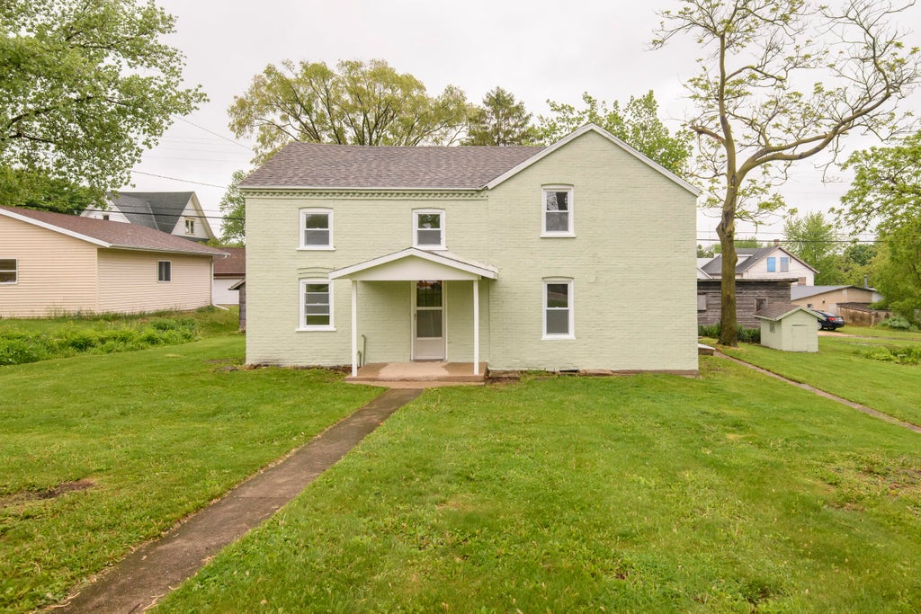 Nestled on a double lot with vibrant perennials this historic brick home blends timeless charm with updates. The home boasts a fresh coat of paint inside and out, new roof, new gutters, some new drywall and more. Step inside to discover the heart of the home, a spacious new eat in kitchen with a full appliance package, first floor mudroom and laundry, and a extra large living room. Full bath and bedroom on main floor for convenience. Second floor includes 3 bedrooms with an attached bonus room, perfect for an office or walk through bedroom. This unique layout offers lots of space and possibilities. Two quaint outdoor workshops/garage offer space for hobbies and storage. This is the perfect home for those that appreciate updates with quirks that only a historic home like this can offer.