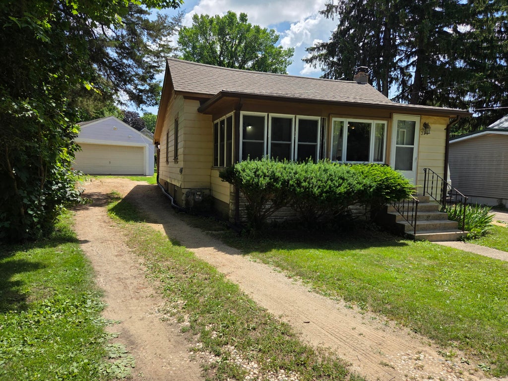 Why rent when you can own! This 2-bedroom home features a 2-car detached garage plus bonus storage with an attached lean-to. Step inside to a sun-filled living room with newer windows that bring in natural light. The spacious kitchen offers plenty of cabinet space, room for a dining table, and a patio door that leads to the back deck, ideal for relaxing or entertaining. The full basement includes laundry and provides great potential for additional storage or workspace. Don't miss your chance to make this home yours--schedule your personal showing today!