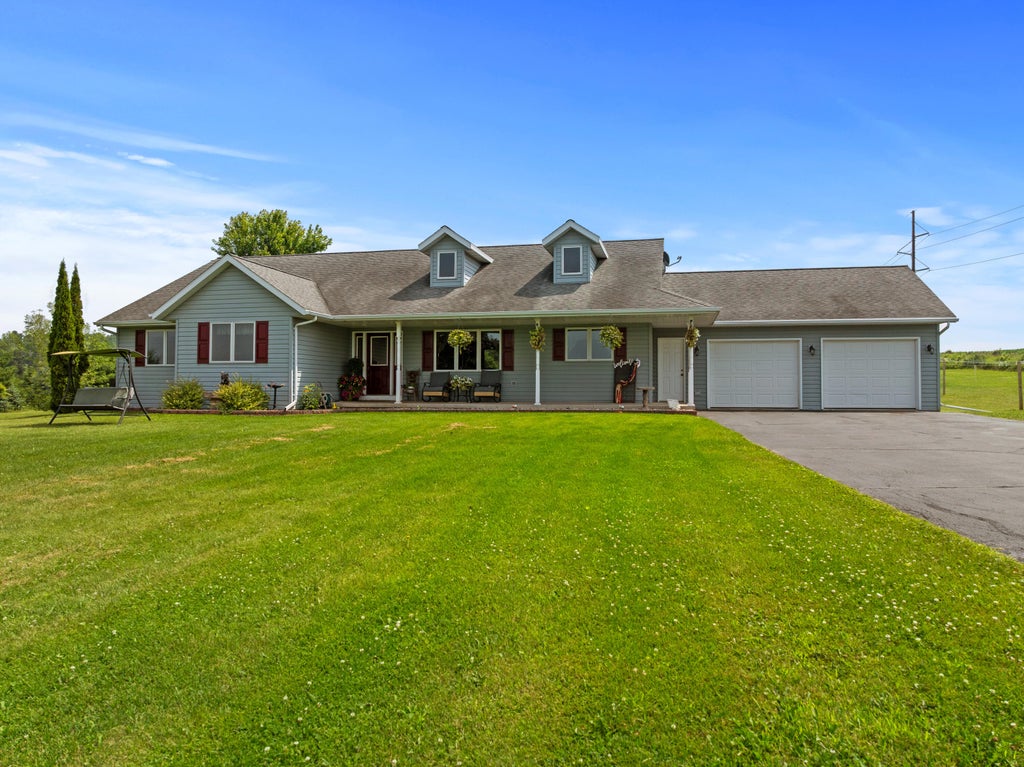 Nestled on 5.3 sprawling acres, this 2,940 sq ft ranch home seamlessly blends modern comfort with rustic charm, offering a serene retreat with ample space to roam. Featuring 3 spacious bedrooms and 2.5 bathrooms, this residence ensures both functionality and style. The updated heat pump furnace and A/C provide year-round energy efficiency, while a new pellet stove with 24-hour battery backup (2023) delivers cozy warmth during outages. A replaced gas fireplace and stunning kiln-dried pine ceiling elevate the interior's inviting ambiance. The property boasts a 2-car attached garage and a 2.5-car detached garage, offering abundant storage for vehicles and equipment. Additional updates include new windows (2024) and an updated washer and dryer (2024), ensuring modern convenience.