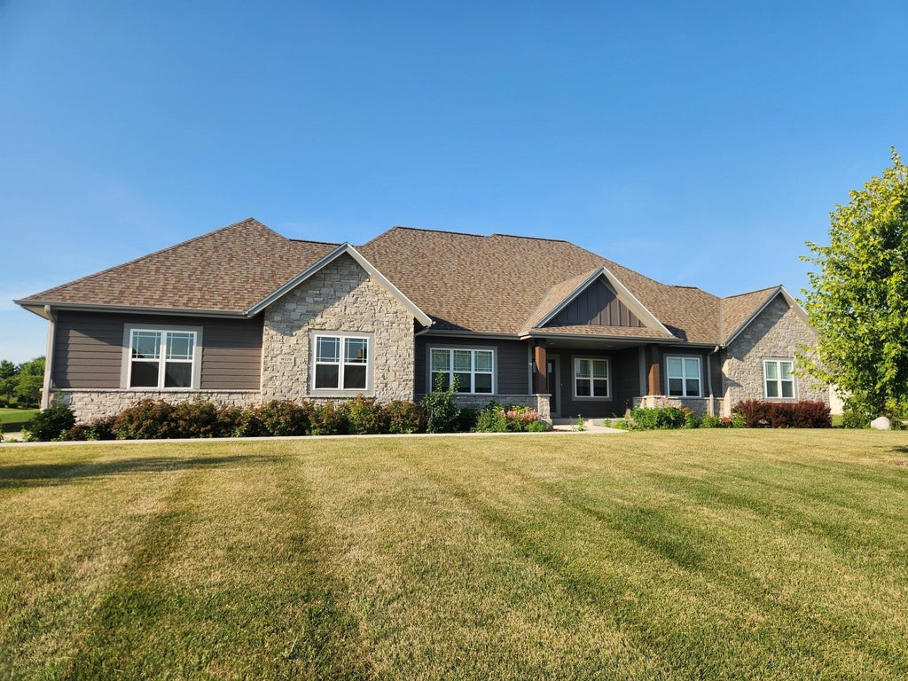 Better than new and an unbelievable Pewaukee location! This 2021 build modern ranch blends an open-concept layout with a mid-century vibe. No LVP here--just rich white oak hardwood floors that add warmth and style. Primary Suite offers a spa-like experience with a WiFi-enabled shower, while beds 2 and 3 share a thoughtfully designed Jack-and-Jill bath, giving everyone their own space and privacy. The quality does not stop upstairs! The finished basement features a sleek bar, 4th bed, a beautifully tiled full bath, media room, and a gym that may make you ditch your membership. A staircase from the garage to the basement makes moving or storing gear a breeze. Outside, an oversized patio and fire pit set the stage for cozy fall nights. One look and you'll fall in love with your new home!