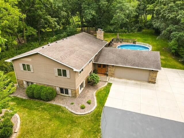 Meticulously maintained Bristol bi-level beauty, New(9/23/25) roof(tear off and new shingles) on house and attached 2.5 car garage,5 bedrooms,2 bathrooms,2 brick fireplaces, washer/dryer on both floors, remodeled baths,kitchen (cabinets,granite counters, stainless steel appliances),hardwood flooring. 2020: new dual capacitor air conditioner; 2022: furnace blower replaced.Very private,beautiful,wooded back yard, large deck , 24' diameter (4.5' deep above-ground pool, heater,liner replaced,new solar cover, Dolphin E 10 robotic pool cleaner,sand filter,sand change).Ample parking on large concrete/asphalt driveway; municipal sewer, private well. Conveniently located in the Milwaukee/Chicago corridor west of I-94 in the land of lakes.