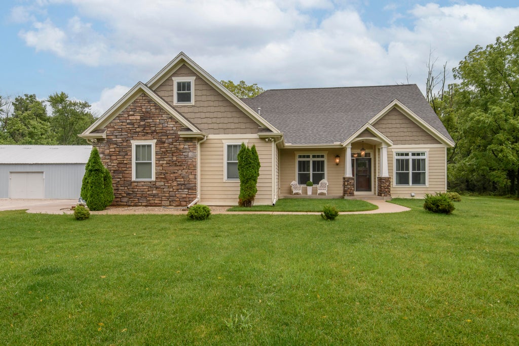 There's nothing like this in the City of Delafield. A stunning 4-5 bed 5 bath Craftsman Style house welcomes you home. The first floor boasts hickory hardwood floors that are warm and welcoming. Enjoy the large kitchen with counter seating, quartzite counters, and a fabulous coffee bar. Step into the 3 season room to admire your 3 acre lot, a rare find, conveniently located near shops, restaurants, and I-94. The primary bedroom has a large closet and a spa-like bath with a jetted shower, jetted tub, and heated floors. Head upstairs to a large bonus room that could be a 5th bedroom or another family room. The lower level is great for entertaining with a gym, rec area, 4th bedroom, and a cedar closet. Bring your cars to the 45x70 pole barn with 200 amp electric. You can have it all!