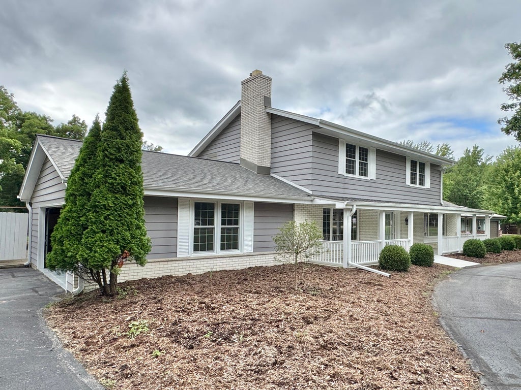 Stunning, Fully Remodeled Home walking distance to lake access and kayak launch! This completely transformed 3-bedroom residence (including two luxurious en-suites) sits on a picturesque, tree-lined acre offering unbeatable privacy & location. Flexible layout features multiple living spaces: Family Room, Living Room, plus a Den or Office & a charming dining area right off the kitchen for easy entertaining. Upstairs you'll find three generously sized bedrooms finished with crisp white trim & designer neutral tones. The two full bathrooms feature tiled showers, quartz vanities and with elegant marble touches that rival new construction. Step outside to your huge deck overlooking lush green space and a protected environmental easement, ensuring long-term privacy and serene views.