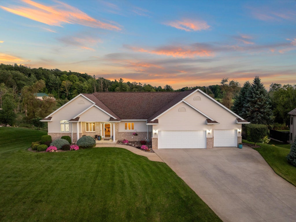 Meticulously maintained and thoughtfully updated, this Bartow Builders custom ranch feels nearly new. The main level is filled with natural light and sweeping golf course views, featuring a spacious primary suite, kitchen with oversized island, and dining area. A versatile bonus room with dual-access full bath offers flexible living or guest space. Enjoy first-floor laundry, a finished garage, custom finishes, and gas fireplaces on both levels. The walkout lower level adds two large bedrooms, full bath, and expansive living space. Step outside to a beautifully landscaped .45-acre lot that offers the perfect blend of privacy and open views. Southern exposure fills the home with light all day, and you're just seconds from Pigeon Lake and Autumn Ridge Golf Course.