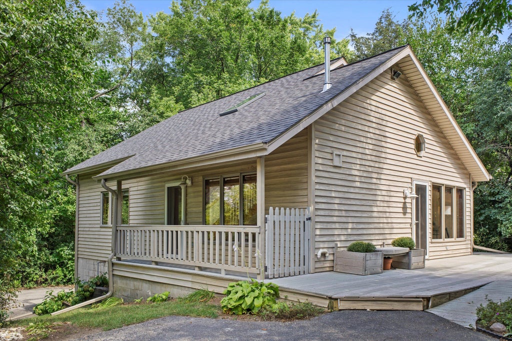 Charming Cape Cod home, steps away from Okauchee Lake & all the fun this area has to offer. Bright & inviting, this 2 bed, 2 bath home features large windows that flood the space with natural light. The freshly painted interior offers a main floor primary bedroom and laundry. Relax or entertain on the spacious deck, surrounded by a natural canopy of trees, creating a private retreat while still being close to restaurants, shops & the vibrant energy of the lake. Double lot offers space to add an outbuilding, blending cozy living with room to grow. Whether you're looking for a year-round residence, weekend getaway, or vacation rental, this home combines comfort & convenience in a prime location. Roof 2025, AC 2023, furnace 2020, new appliances, refinished HWF, plumbed for 3rd bath in LL.