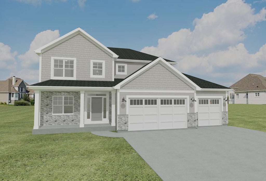 Bear Homes proudly presents this move-in-ready Wellington plan! Offering over 2,300 sq ft, this 2-story home features 4 bedrooms plus a versatile 1st-floor office/5th bedroom. The open-concept design highlights quartz countertops, LVP flooring, and a tiled master bath with a beautiful walk-in shower. A cozy fireplace anchors the spacious great room, while the daylight basement is ready for your finishing touch. Added features include a stainless steel kitchen appliance package, concrete driveway, 1-year builder warranty, 15-year dry basement warranty, and 3rd-party energy testing by Focus on Energy. Enjoy privacy and nature right in your backyard, your new home is waiting! Est. completion end of November 2025.