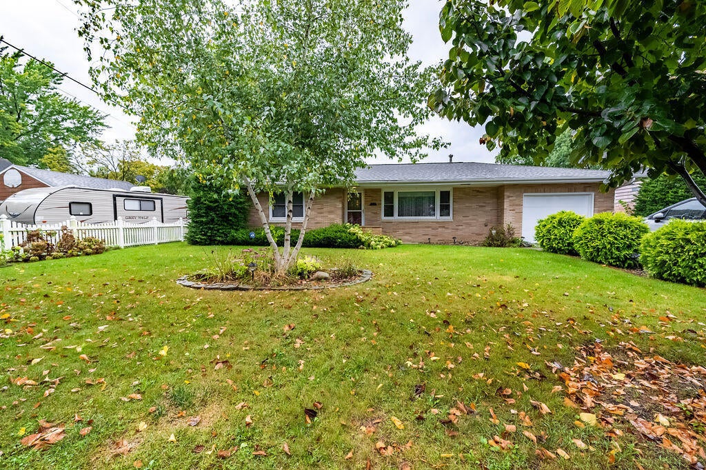 This well-kept one-level ranch offers easy living with an attached garage and inviting three-season porch overlooking the backyard. Step inside to a spacious living room that flows into the convenient kitchen and dining area. Just down the hall, you'll find the full bath and bedrooms--each featuring hardwood floors and two closets for ample storage.Enjoy summer evenings on the roomy porch or in the fenced backyard, perfect for pets, play, or gatherings. Be pleasantly surprised at this remodeled basement offering space to set up as you prefer from entertaining, hobbies, or relaxation. A wet bar awaits to help with entertaining on this level. A laundry room and bathroom tucked in behind the utility area to complete the lower level. Added features include an inground sprinkler system.