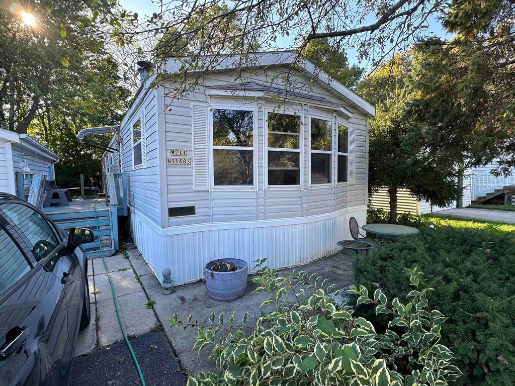 THIS IS A MANUFACTURED HOME! MONTHLY LOT RENTAL IS $825 AND INCLUDES GARBAGE PICK UP AND MAINTENANCE OF ROADS! Other fees will be sewer/water ($25-$35)/personal property tax $17/month. 2 pets allowed, 1 cat and 1 dog or 2 cats, dog breeds limited. Awesome 2 BR 1 BA manufactured home...low maintenance living! Open concept floor plan, all appliances included, 1.5 car garage! Vaulted ceilings and NFP! Awesome, huge deck and a wooded lot! Buyers MUST get pre-approved with the park for renting the lot. No traditional financing, we suggest 21st Century Mortgage as they do manufactured home loans.