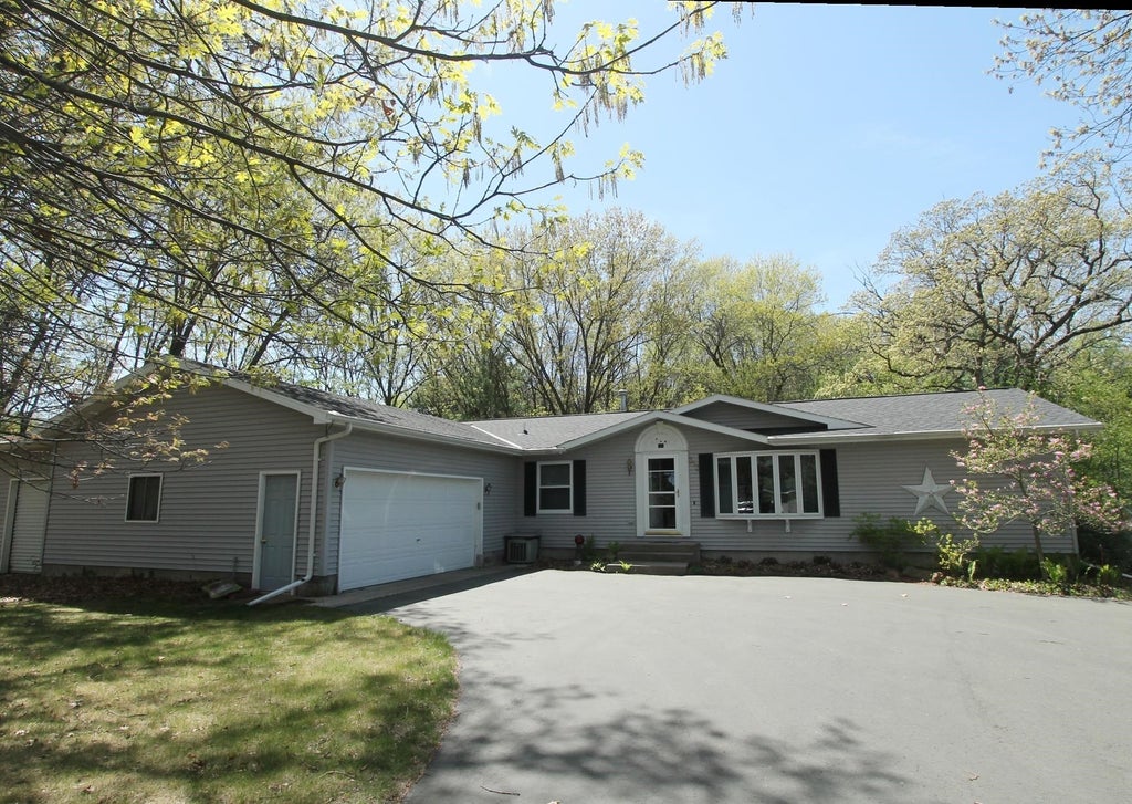 WELCOME HOME: This bright, clean and well-maintained ranch style home is situated on a large country acre and offers great wildlife viewing in this fully wooded setting near the end of a Cul de sac drive. Kitchen offers great storage, cabinet space and pantry. Living room has vaulted ceilings and gas log fireplace. Dinette area offers views and walk out to a large deck overlooking the private, wooded backyard . Master bedroom has a private bath and walk-in closet. 2 good sized bedrooms and full bath on opposite end of the home offers room for guests. Conveniently located main floor laundry/utility room area. Full dry basement could be finished for added living space. Updates include a newer roof and furnace. 2 car attached garage has a 4-season workshop