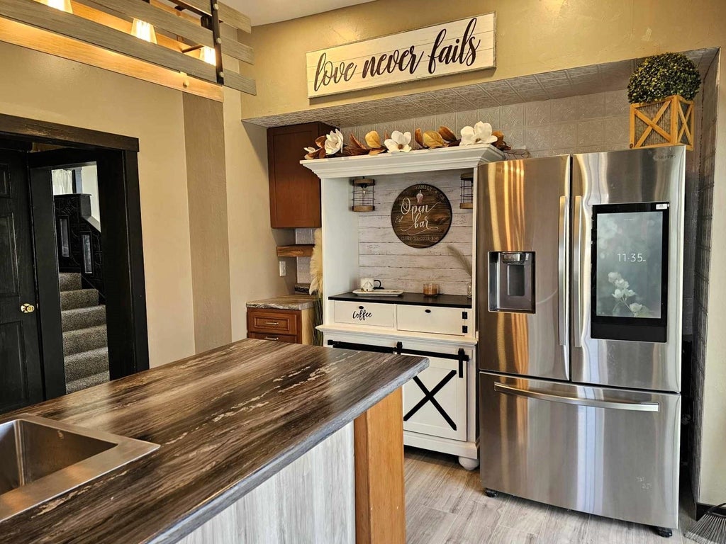 Showings are delayed until 9/12/25. Beautiful 4-bedroom, 2 bath home with large back deck, spacious rooms located within walking distance to parks, hospital, school, shopping and dining. The main floor consists of entry porch, kitchen, living room, bedroom, office area and full bath. The upper level contains 3 spacious bedrooms and a full bath with soaking tub. Enjoy the quiet back yard from the new large deck off the kitchen. Includes many recent upgrades: some new windows, doors, drywall, flooring, insulation, wiring, kitchen, bathroom, lighting, fixtures, new furnace as well as concrete driveway and large wooden deck. This home is ready to move into; there are many special features including lighting, faucets, cased dishwasher, and more!