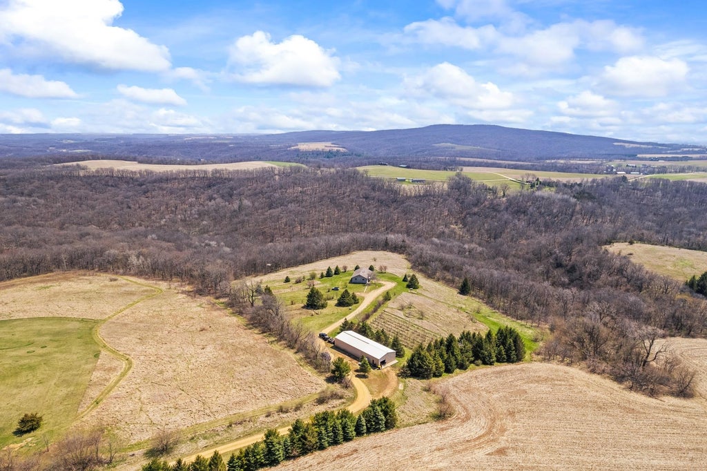 Breathtaking views of Blue Mounds and the Baraboo Bluffs. Arguably the best views in Iowa County from this gorgeous 3BR custom-built home that is nestled on 41 beautiful wooded acres with meandering creek & only 20 minutes from Madison! Bright, airy open floor plan with gleaming Oak flooring and custom Oak cabinetry. Covered south-facing deck provides incredible viewing opportunities of wildlife & surrounding countryside & unique view of the Blue Mounds. Includes a detached 30x82 shop with 30x32 insulated workshop! Township confirms that an additional building site is available, buyer to verify if material. Great hunting opportunities with an abundance of deer and turkeys. Location, location! Your rural retreat awaits.