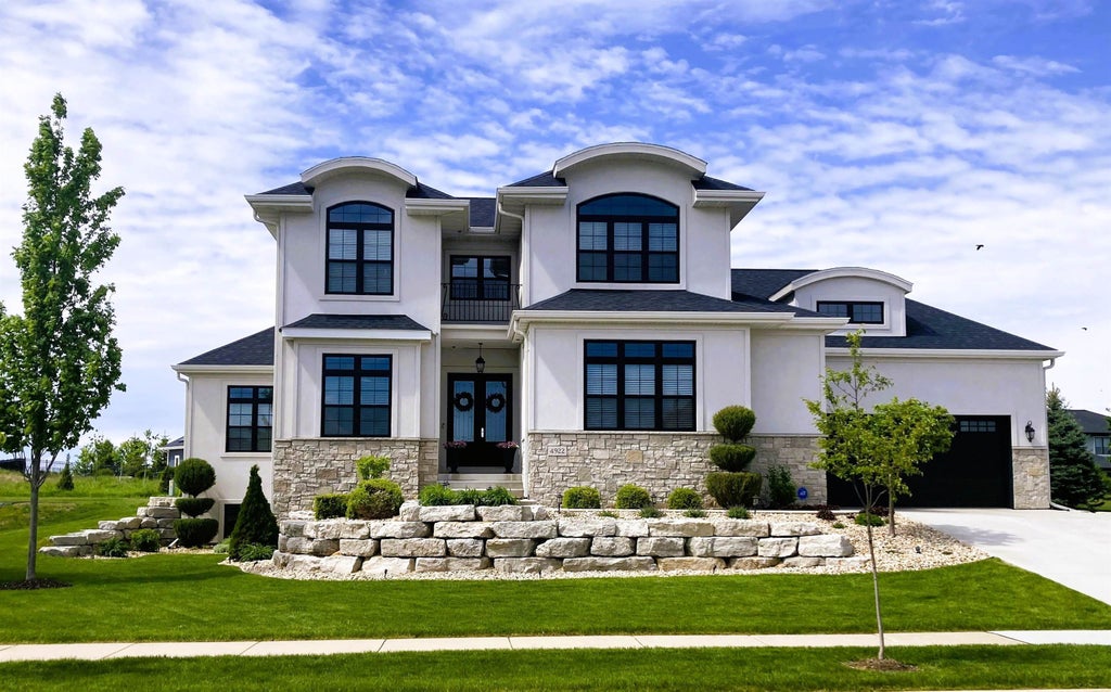 Waunakee Schools. Stunning 4 bd/4 bath home in Community of Bishops Bay, backing to green space w/ incredible sunsets & views. Custom built home with 10 ft. ceilings, built-ins, gourmet kitchen, quartzite counters, huge walk-in pantry, coffered ceilings, wood floors, sunroom, office, mudroom, spacious great room w/ fireplace. UL features primary suite w/ spa-like marble walk-in shower & custom walk-in closet, 2 add. bedrooms & laundry. LL features rec room, eat-in bar, exercise room, bedroom & bath. Extra large 3-car drywalled garage w/ 13 ft. ceilings & access to LL & BB hoop. Backyard features large patio with built-in fire pit, low-voltage lighting, outdoor speakers & irrigation system. Perfect home for those looking for upscale living in a beautiful location. No sign on property
