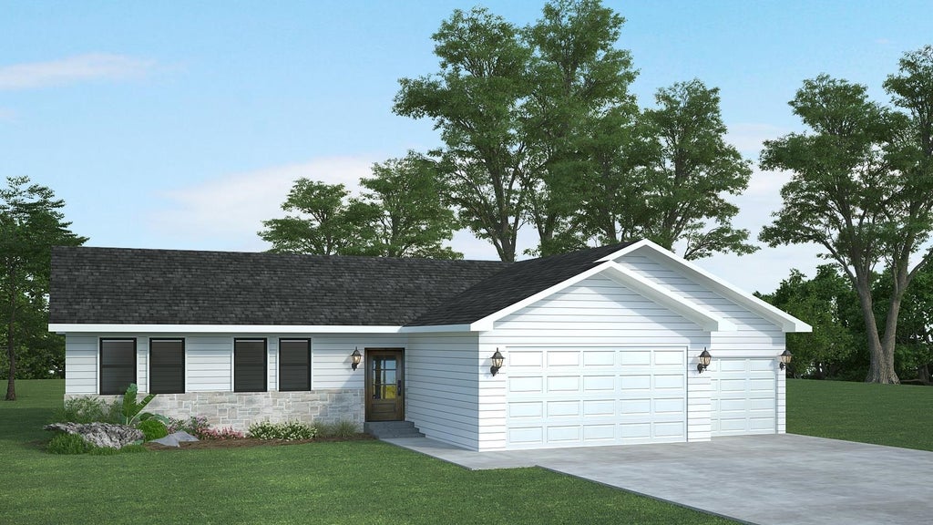 Estimated completion September/October 2025. Lot 141 in Bell West Subdivision features a popular and affordable 1,580 sq. ft. home with an inviting open concept layout. The spacious great room flows into the kitchen, complete with granite counters, a center island for added storage, pantry, and bright white cabinetry. Additional highlights include vinyl siding, central air, 200 amp electrical service, and a basement rough in with egress window for a future bath. A seeded yard will complete the exterior, providing a fresh and welcoming setting. Pictures shown are of a similar model and finishes may vary. May include a 10 year limited basement waterproofing warranty, offering buyers added confidence in long term quality and peace of mind.