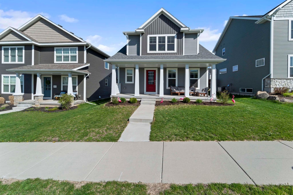 Bright and spacious 3BR/ 2.5BA home in Heritage Hills in Waunakee. The home is situated on a unique lot with a charming porch directly overlooking green space + park. Main level creates a welcoming environment to entertain guests. Living room seamlessly flows into the dining room and kitchen. Kitchen hosts an abundance of cabinet space + a large island! Convenient main level flex space provides the perfect home office. Living room and kitchen have views of the large maintenance free deck. Main level laundry/mudroom leads out to the 2 car attached garage. Upper level primary has tray ceilings, large walk in closet and en suite with dual vanities and walk in shower. Addl. 2 bedrooms and full bathroom on upper level. Unfinished lower level is perfect for storage, or ready to finish out!