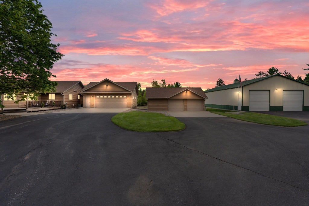 Beautiful & serene ranch home, nestled on 3+ peaceful acres surrounded by nature! Sun-drenched ML featuring numerous updates, 3 spacious bdrms & 2 baths. Expansive dining area is perfect for gatherings! Convenient laundry rm adds to the home's thoughtful layout. Kitchen is a chef’s dream with abundant cabinetry & ample counters. Finished walk-out LL offers a large family rm, bedroom, full bath, & an abundance of storage—ideal for guests! Enjoy the outdoors from two massive decks where you can relax to the sounds of birdsong and the gentle whisper of the surrounding pines. Property also includes a 2-car attached & 2-car detached garage, plus an impressive 40x80 storage building with a concrete floor—perfect for all your hobbies, equipment, or business needs!