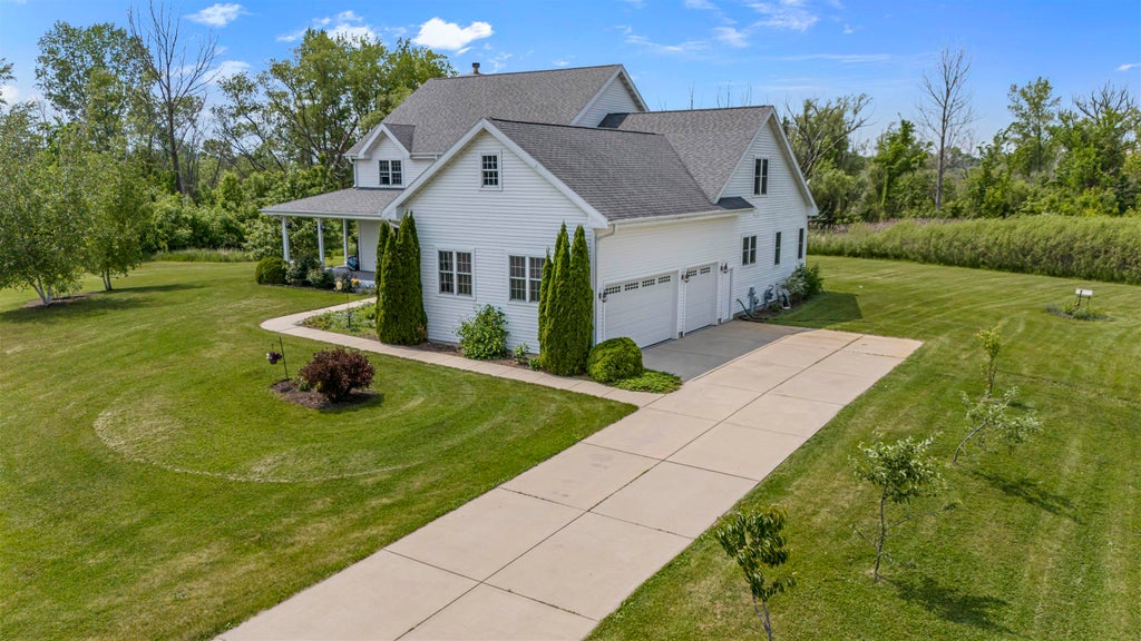 This custom built home backs up to Governor Nelson State Park and is just across from Lake Mendota. The main level features a spacious living room with a stunning stone wood-burning fireplace, formal and informal dining areas, a den/office, dual mudrooms, and a convenient laundry room. The kitchen is a chef’s dream with stainless appliances, granite countertops, a copper farmhouse sink, walk-in pantry, and breakfast bar. The main-level primary offers a walk-in closet, ensuite featuring a jetted tub, walk-in tile shower, and separate toilet room. The lower level is exposed and ready to be finished. Enjoy the outdoors from the screened wraparound porch or low-maintenance deck. An out building provides additional storage. The attached 3-car garage is a bonus.