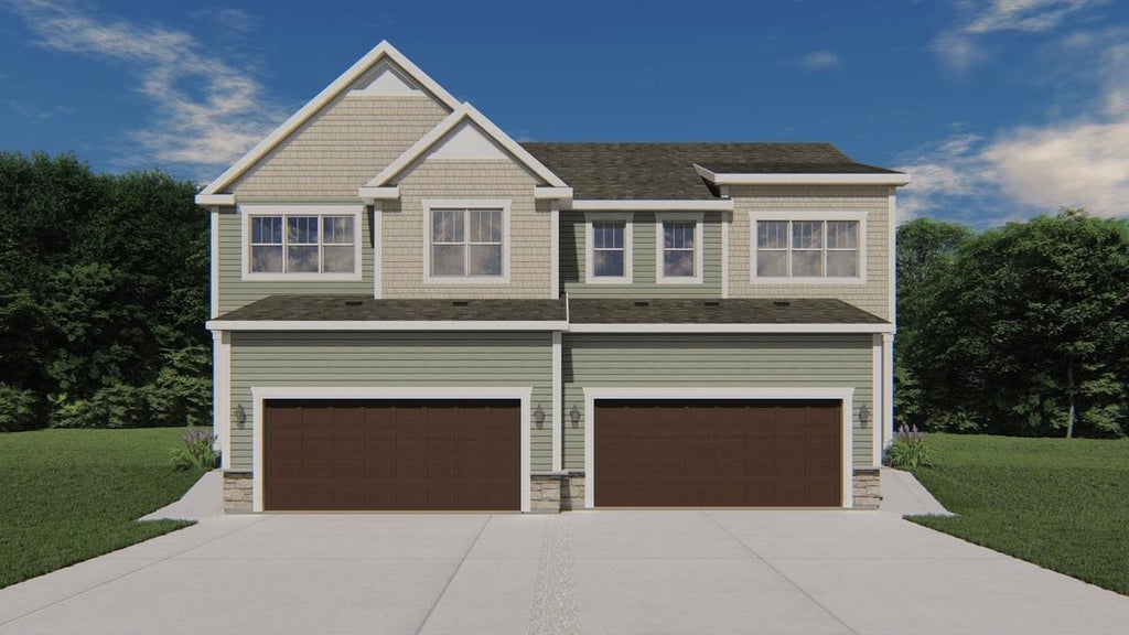 Welcome family and friends into your new energy-efficient green built home with open concept, featuring inviting spaces with an open concept main level. Plenty of room in this home for entertaining, playing games, watching TV or relaxing by your fireplace. This twin home features solid surface counter tops, extra large island and a rear covered patio. Upstairs features a spacious primary bedroom with box tray ceiling, large walk in closet and ensuite bathroom. The other 2 bedrooms are also nicely sized, one with walk in closet. You will appreciate the conveniently located upper floor laundry room. Tons of potential for a future finished basement. 2 car attached garage. *Photos of similar model.