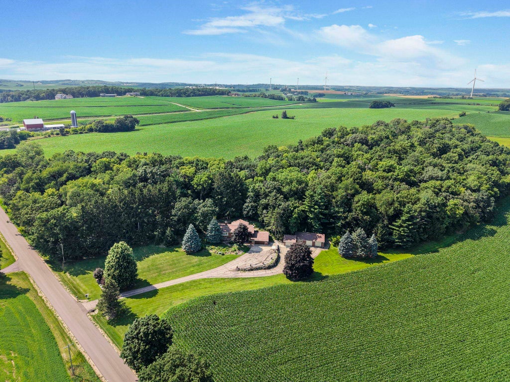 Private woodland retreat on 5 acres in the Middleton-Cross Plains School District. This custom brick home is surrounded by mature trees, landscaped gardens, and sweeping rural views. Inside, enjoy natural light, warm wood finishes, and scenic vistas from every room. The main floor features a spacious living room, built-in dining area, and a thoughtfully designed kitchen. A versatile detached shop with loading docks is ideal for hobbies, storage, or a small business. Trails, wildlife, and total privacy offer a rare lifestyle of peace and space—just minutes from town.