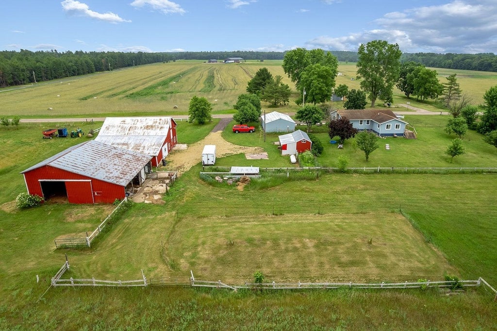 Welcome to the country life! This charming 2-bedroom, 1-bathroom home is nestled on 15 beautiful acres and has been thoughtfully updated to blend rustic charm and modern conveniences. The home features a brand-new addition, new flooring throughout, updated bathroom, and new windows that fill the space with natural light. Step outside onto the newly built back deck and enjoy the tranquility of your private oasis. Major updates include a new mound septic system (2021), new pressure tank, new hot water heater, and an efficient outdoor wood burner—ideal for Wisconsin winters. Outside, the property offers everything you need for a hobby farm or homestead dream: a barn, pole shed, and chicken coop are all ready to go. There's space to raise animals, grow your own food, and enjoy nature.