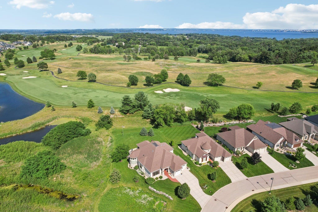 A rare opportunity in the renowned Villas of Callaway Court in beautiful Bishops Bay, The Back Nine. Extremely private and quiet location overlooking the 5th fairway with plenty of land as a protective buffer, this exceptionally high quality Michael F Simon home filled with stunning architectural details sits on over half an acre of land and leaves little to be desired. Stunning, open, bright great room. A spectacular outdoor kitchen and large screened porch overlooking your private sanctuary with long, peaceful & natural views. Zero entry main level living with generous accommodations up. Large, finished, heated garage with overhead side service door. Huge, exposed basement with loads of room to expand. Snow removal & lawn care handled by the well run association.Truly amazing. Come see!