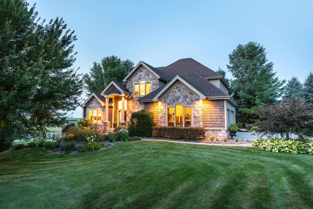 Beautiful stone home with expansive views of the 1.59 acre gorgeous yard. Two story cathedral ceilings, 3 car garage, all new windows and exterior doors, new mechanicals + a main level suite. Estate like setting, gorgeous neighborhood with large lots and picturesque scenery. Freshly painted with new lighting fixtures, updated mechanicals, just bring your personal touch. Main suite includes whirlpool tub, rain shower, and coved ceilings. Built-ins, French doors, walk-in closets, main level office, floor to ceiling windows, large kitchen, main level laundry, huge rec space in the LL with full window exposure and a walkout, Middleton Schools, the list goes on. Delight in the beauty and ample space in this serene gorgeous country home, an easy drive to downtown. Space for a pool and gardens!