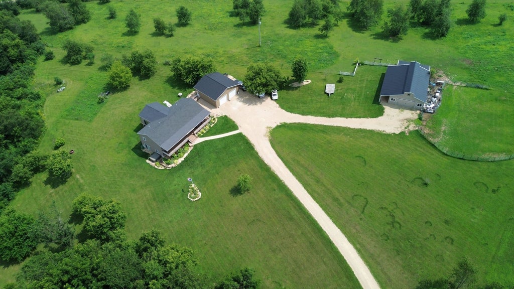 Discover your perfect country haven where your animals can roam free. Ideally located between Mineral Point and Darlington, this beautifully updated homestead, built in 2015, features an inviting open-concept main floor with two spacious bedrooms upstairs. The recently renovated kitchen shines with a large pantry, concrete countertops, and premium appliances, flowing seamlessly into the dining room. A mudroom and garage addition offer extra convenience, while the expansive lower level boasts an in-home theater, two more bedrooms, and a custom-tiled bath—perfect for entertaining or relaxing. Enjoy a versatile barn with horse stall and storage space, plus fully fenced land and stunning views, creating a true rural sanctuary. Don't wait - schedule your tour today!