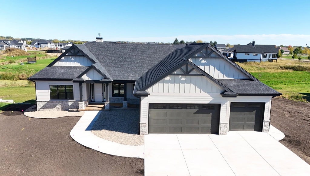 This stunning custom built dream home ranch backing to greenspace offers over 3,800 sq ft, 3 car garage, 6 bedrooms, 3 1/2 baths, gourmet kitchen w/ quartz countertops, custom Amish cabinets, stainless steel appliances, island & walk-in pantry. Great room w/ soaring ceilings, impressive fireplace & built-in’s, 4 season sunroom, deck & patio. Owners suite w/ tray ceiling, large walk-in closet & en-suite with walk-in tile shower & dual vanities, main level laundry & mudroom w/ custom cubbies. Walk-out lower level is perfect for entertaining w/ spacious family room, huge rec room w/ wetbar, 4th & 5th bedroom, office / flex room (6th bedroom), 3rd full bath & zoned HVAC. Steps from bike/walk path, 2 neighborhood parks & pickleball in stunning Golden Ponds. Approx completion Oct 2025.