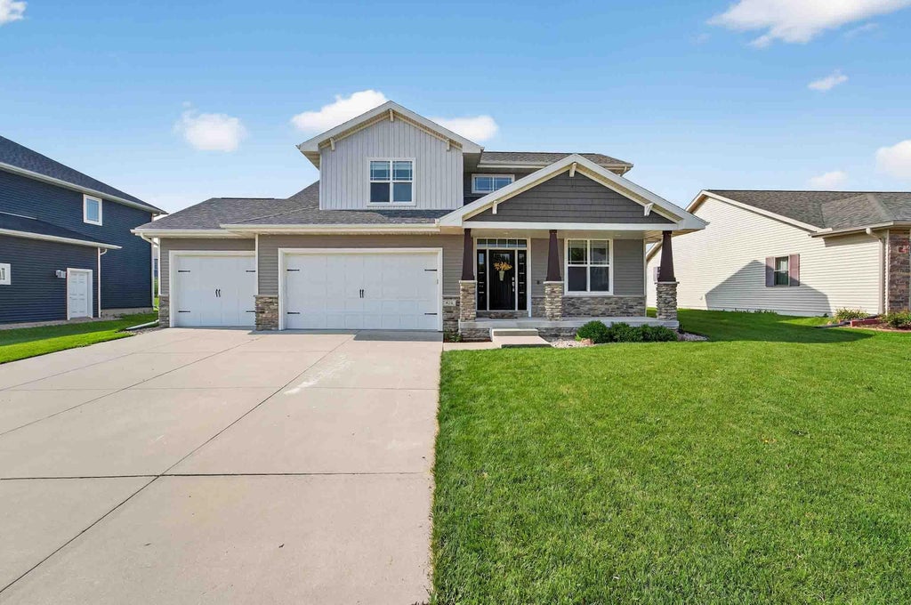 Beautifully maintained 4-bedroom, 3.5-bath home in Alpine Meadows! The main level features a vaulted great room with a cozy corner gas fireplace, a spacious dining area that opens to a stunning paver patio and fenced backyard—perfect for outdoor entertaining. The kitchen offers solid surface countertops, a generous island with breakfast bar, and a large walk-in pantry. Convenient mud/laundry room includes built-in cubbies for organization. Upstairs, you'll find three bedrooms, including the primary suite with tray ceiling, walk-in closet, and spa-like bath featuring dual sinks and an oversized tiled shower. The finished, exposed lower level adds flexible living space with a media/family room, exercise nook, full bath, and 4th bedroom. Oversized 3-car garage. Truly move-in ready!