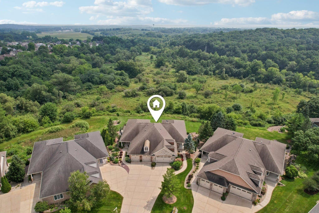 Nature for Neighbors! EXPECT TO BE IMPRESSED! This Stunning 3318 sqft 4 bdrm, 2.5 bath ranch condo offers panoramic view for miles & is surrounded by a Peaceful Nature setting! Walk in & fall in love with the Beautiful wide open floor plan flooded with natural sun light and graced by elegant white wide woodwork and solid cherry hardwood floor! Impressive great rm opens to huge dining area, granite kitchen & 4 season rm- perfect for entertaining! 1 st flr office! Luxurious 1st flr Master features a romantic fireplace & Luxurious whirlpool bath w/big walk-in tiled shower! The enormous closet walks through to the laundry rm! The walk out LL features a fmly rm w/ 3rd fireplace, granite wet bar, 2 Guest bdrms & exercise tm & bath-Warmed by In-floor heat &2 zone htg! 2 1/2 car w/ stairs to bsmt!