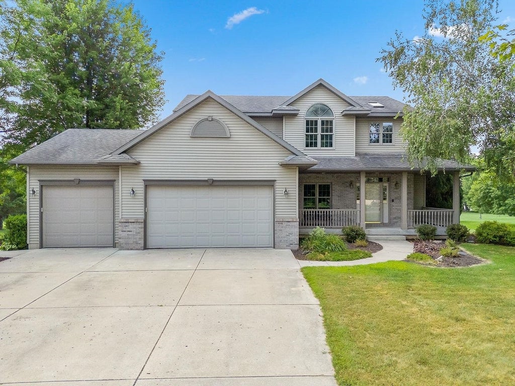 Beautiful contemporary home in the Town of Pacific! This 4 bed, 3.5 bath home sits on 1.76 acres and features a 3-car Attached Garage plus a 28x34 bonus garage—perfect for all your toys. Step into a spacious foyer leading to an open living room with fireplace, updated kitchen with hard surface counters, plenty of cabinets, and a formal dining room. Main floor laundry and half bath for convenience. Upstairs boasts 4 bedrooms, including a large primary suite with tray ceilings, walk-in closet, double sinks, jetted tub, and shower. Finished basement offers a rec room with fireplace, office/den, full bath, and storage. Enjoy peaceful evenings in the screened-in porch overlooking the backyard. A must-see!