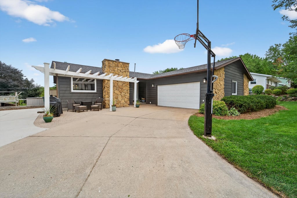 Show 8/15. 3-bedroom ranch with brand-new roof (2025), new windows (2023) and extra attic insulation (2022). Oversized 2-car garage with heating and cooling units. Spacious great room with kitchen island, breakfast bar, dining area, living room and fireplace. Mudroom with storage cubbies and first floor laundry. Finished lower level with rec room, bathroom, gaming/tv room and office/workout/flex room. Private backyard with large deck, garden, and playground or relax in the front yard patio under the pergola. Parking pad for your boat, trailer, RV, or extra vehicles. Great schools and low taxes!