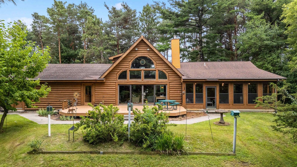Peaceful setting with modern comforts—perfect for nature lovers and those who value craftsmanship. This delightful 2 bed, 2.5 bath Wilderness log home on 1.47 acres backs up to Lake Ripley Conservancy. Enjoy a dramatic wall of windows, open staircase to the loft, wood floors, 3 season room, & a cozy free-standing stove. Spacious kitchen features a double-sided breakfast bar & gas stove. The large open deck offers serene views of the manicured yard and a 65-year-old lilac bush! Primary suite has a Jack & Jill bath with walk-in shower. Extras include remote skylights, storm shelter in basement, stairs from 3-car garage to basement, security system, and wired RV parking. Just a short drive to public park at Lake Ripley and charming downtown Cambridge with restaurants & quaint shops.