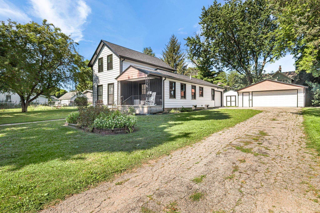 Beautifully updated 3-bed, 1-bath farmhouse with modern style and thoughtful upgrades throughout. Enjoy a bright open-concept layout with vaulted ceilings, new flooring, and a cozy fireplace. The stunning kitchen features butcher block counters, stainless appliances, and a large island. Major updates include new roof, siding, and windows for peace of mind. Relax outdoors in the spacious yard with patio and hot tub, or take advantage of the 1-car attached garage plus 2-car detached garage. Move-in ready and perfect for entertaining, this home blends charm, comfort, and function in one! (Seller holds an active Wisconsin real estate license. Listing agent discloses a personal ownership interest in the property.) (Virtual staging used)