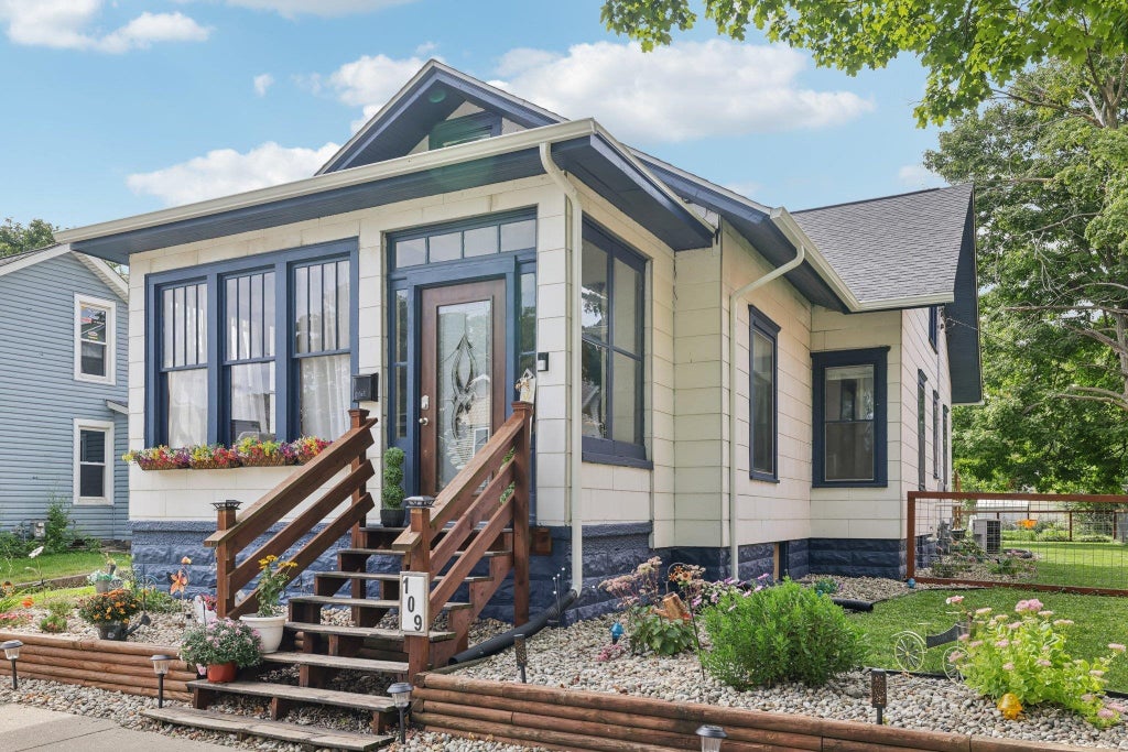 This charming bungalow in Evansville’s Historic District blends historic character with modern updates. Original hardwood floors, rich woodwork, and 9 ft. ceilings highlight the main level. French doors open to a front sunroom filled with light, while the dining room features a window seat and space for gatherings. The updated kitchen includes white cabinetry, stainless appliances, and stylish finishes. Upstairs, the finished walk-up attic serves as the spacious primary bedroom with private bath and closet. Additional features include a back sunroom with windows, a front office/den, and a full basement with tall ceilings and plenty of storage. Outside, enjoy the fenced yard, vibrant landscaping, and excellent curb appeal—steps from downtown shops, parks, and schools.
