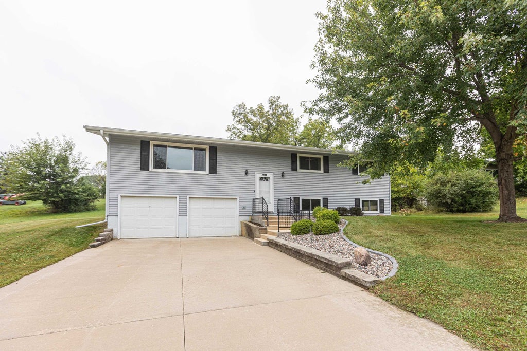This nicely maintained raised ranch has a great price and is located on a quiet street near the edge of Platteville. The main level features a spacious and versatile open-concept living, kitchen, and dining area. There are two bedrooms on this floor, including a very large master suite, and a full shared bathroom. Downstairs, the finished lower level provides an inviting atmosphere with a large and cozy family room centered around a wood-burning fireplace, ideal for relaxing. This level also includes a third bedroom, a second full bathroom, and convenient access to a two-car attached garage. Recent updates to the home include newer windows and a new roof, offering peace of mind.