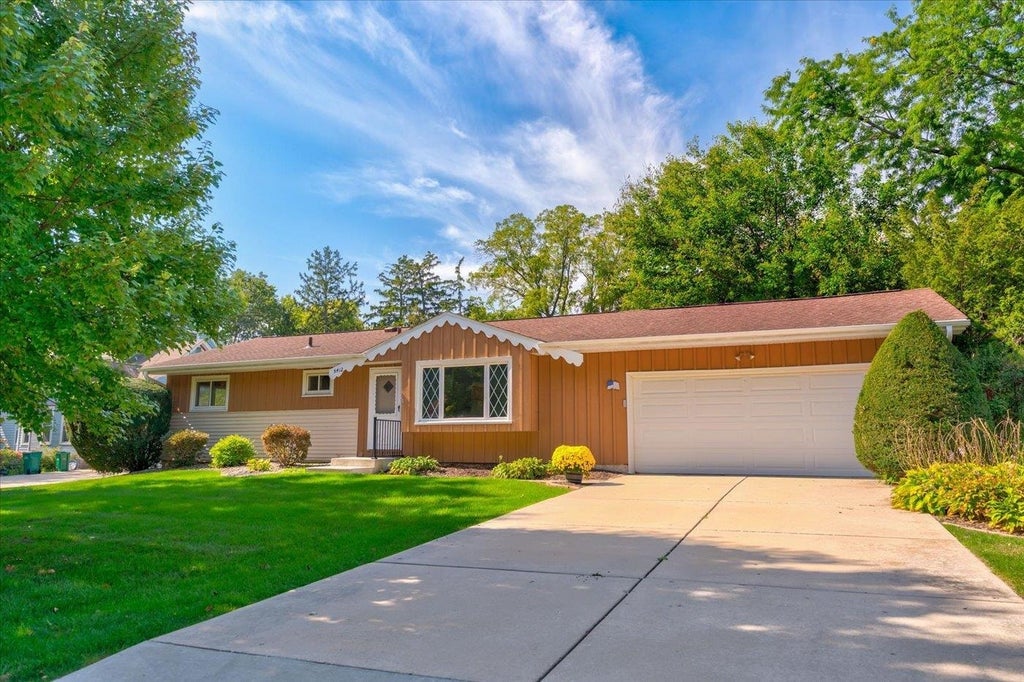 Well kept, sunny 3 bedroom, 1.5 bath ranch on .40 acres near school, library and shopping. Good size living room, two family rooms, eat-in kitchen, hardwood floors in all bedrooms and hallway (need refinishing but solid wood). Main level family room has gas fireplace with walk out to backyard. Spacious lower level family room, along with large unfinished areas for storage or workshop. Washer/dryer in bedroom closet, can easily be relocated to basement. Replacement windows and patio door. Huge level back yard. Attached 2 car garage, hot water heat, central air. Roof - 2017. Closing flexible but prefer asap.